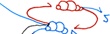 Ein aus Schleifen, bzw. Kringeln, zusammengesetzter Pfeil: sowohl die Pfeilbahn, als auch die Basis der Pfeilspitze weisen Kringel auf.