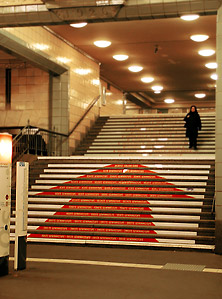 Eine Treppe in einem U-Bahnhof mit Pfeil, Werbung für die Spielbank Berlin: auf dem