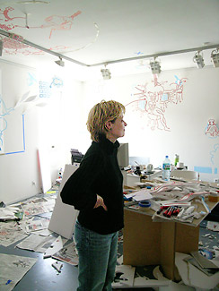 Galeristin Elke Kramer erinnert daran, dass morgen Eröffnung ist...*