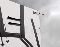Lieblingspfeil Nr. 847 Provisorischer Pfeil Ein "inoffiziell" wirkender und mit Kabel- bindern befestigter kleinerer Pfeil, der, parasitär an den großen Pfeilen befestigt, einläd, doch nicht nach rechts, sondern nach links zu fahren... |