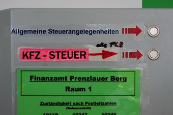 Am Wartenummerautomaten haben mutmaßlich genervte Mitarbeiter des Finanzamtes Prenzlauerberg / Weißensee einen