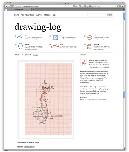 Auftragszeichnungen und Tageszeichnungen zu sehen. Wenn ich unterwegs bin, ist diese Seite ist für mich wesentlich einfacher zu bestücken, weil die Software, mit der ich diese Seite hier baue, auf meinem neuen Rechner nicht mehr läuft – und ich immer noch keine vernünftige Alternative gefunden habe, die mir erlauben würde, wie gewohnt alles in Tabellen zu bauen....