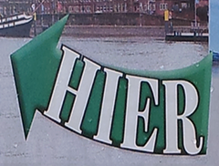 Lieblingspfeile Nr. 1356 Grüner Pfeil Soll der Schwung dieses grünen Pfeiles irgendwie maritim sein? Ansonsten: beeindruckend die Unstimmigkeit zwischen Pfeil und dem auf den Pfeil gesetzten Wortes "HIER". Die Buchstaben sind in ihrer Größe weder an die sich dynamisch verändernden Pfeilbahn angepasst worden, noch berücksichtigen sie den am Pfeil angedeuteten Raum. Eingereicht von Bettina Brach: "Grüne gebogene Pfeile im Zeitungskontext haben anscheinend Saison!" (damit bezieht sie sich auf den Eintrag vom 20.01.2015) |