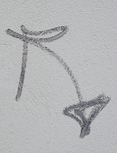 Lieblingspfeile Nr. 1354 Pfeil im Pfeil Eine schöne Variante eines Pfeils im Pfeil, wobei die konische Form der Pfeilbahn des großen Pfeils dazu führt, dass der innere Pfeil und auch das Wort "Schieben" schräg an ihm ausgerichtet werden. Es gibt hier viele schöne Details, die den Charme dieses Pfeils ausmachen: die nicht mittige, also tiefergelegte Pfeilspitze, der nicht gleichzeitige Ansatz (oben früher als unten) der Pfeilspitze und die meist kaum noch zu erkennende Umrandung (Vorzeichnung?), an der entlang der Pfeil ausgeschnitten wurde. |