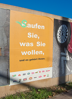 Einer meiner Beiträge zur Aktion Open Air Gallery in Bremen, fotografiert vom Harald Falkenhagen. Die Frage bleibt: wenn man in Werbedisplays Kunst statt Werbung zeigt, macht man dann nicht Werbung für Kunst und den Künstler und wird dann Kunst, und speziell die zu sehende Kunst, nicht auch zu einer beworbenen Marke? |