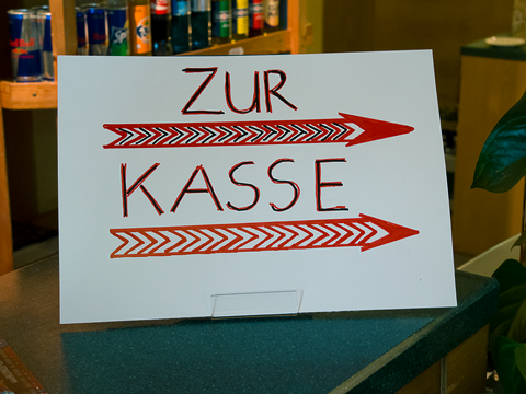 Lieblingspfeil Nr. 1428 Gefüllte Pfeilbahn Irgendwie logisch: zwei Worte zwei Pfeile. Ich muss zugeben, dass ich dieses Schild nicht sehr schätze, was auch dadurch beeinflusst sein mag, dass die Mitarbeiter des Kinos, an deren Kartenverkaufstresen ich es fotografierte, selbst für Berliner Verhältnisse ausgesprochen unfreundlich kommuniziert haben und so sehe ich deren maulfaule Ruppigkeit mit einem Gut-das-Du-Dich-jetzt-wieder-verziehst-Einschlag im Design der Pfeile gespiegelt... |