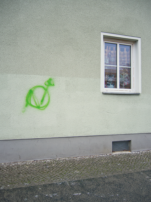 Der Pfeil, der im Eintrag vom 23.10. noch an der Fassade hinter dem in die Höhe wachsenden Neubau zu sehen war, ist inzwischen weg dafür gibt es jetzt neu ein paar 100 Meter weiter ein ungelenk wirkendes Hausbesetzer-Zeichen mit klumpiger Pfeilspitze: Lieblingspfeil Nr. 1427 (untere Abbildung) Verpfeilter Buchstabe Ein verpfeiltes "N" in einem unscharfen Hausbesetzerzeichen, was auf mich weniger revolutionär, denn kraft- und mutlos wirkt. |