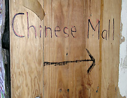 Zwei schöne und typische Beispiele von handgemachten Pfeilen in Chinatown: pragmatisch und so über Monate im Einsatz... anders als anderswo in NYC, setzen solche Pfeile das Ansehen eines Geschäfts nicht herab.