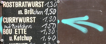 Allerdings ist die Preistafel des Imbisses in der Köpenicker Strasse in Berlin-Kreuzberg über das schon vorhandene Graffiti montiert worden...