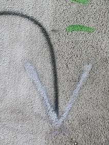 Ein, mit dunkelgrauen Gafferband auf den Gehweg. getapter Pfeil, bei dem
